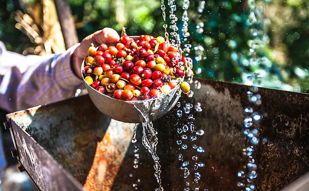 In this method, freshly harvested coffee cherries (the fruit) are washed in water to remove the pulp. The beans are then fermented, washed again, and finally dried.