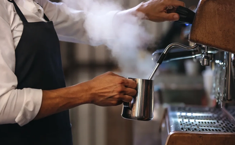 専用のエスプレッソマシンを使用し、濃縮されたコーヒーを作ります。