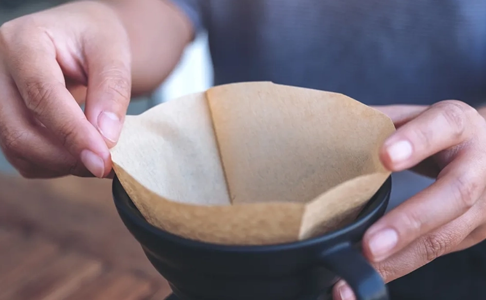 ドリッパーにペーパーフィルターをセットし、フィルター全体をお湯で湿らせます。